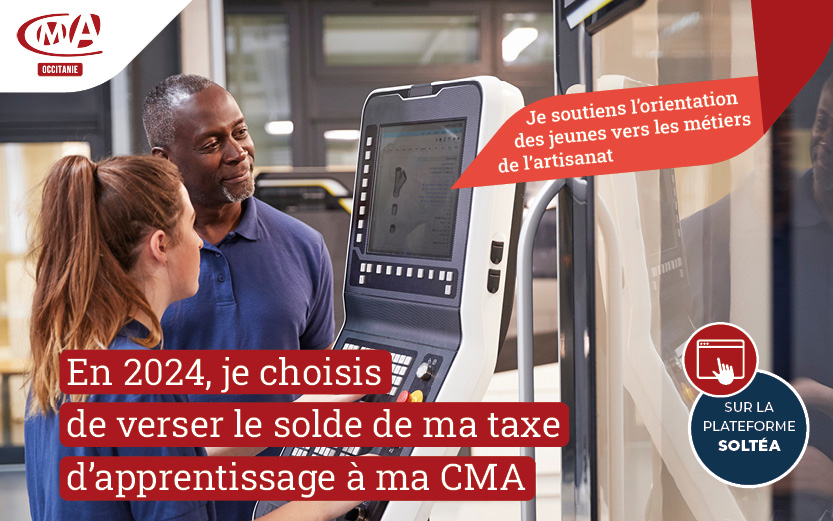 Donnez un coup de pouce à la formation professionnelle en versant votre taxe d’apprentissage à la CMA Occitanie. Ensemble, construisons l’avenir !
